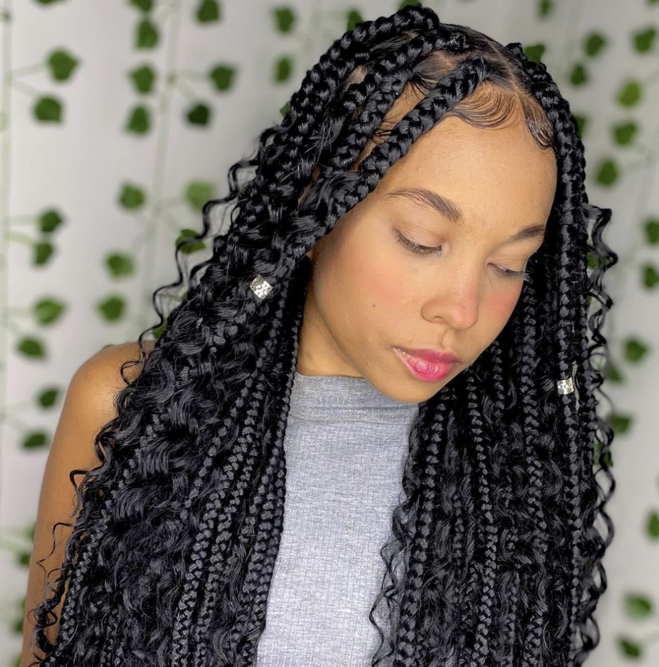 Box braids are a versatile and timeless choice for any event. This holiday season, give them a fresh spin by incorporating metallic thread or cord into your braids. Gold, silver, or rose gold accents can add a touch of glamour and shimmer to your hairstyle. You’ll shine like a star on the dance floor, catching the light with every step you take.
