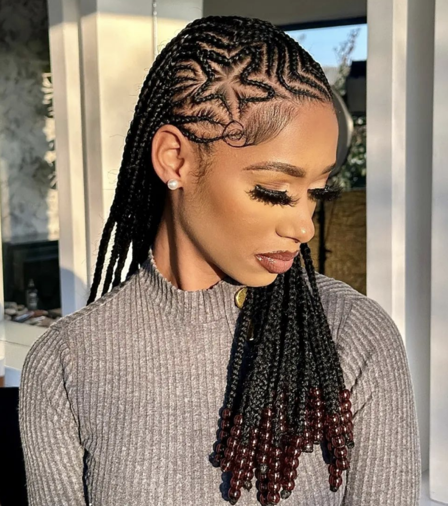 Fulani braids are all the rage, and they’re a fantastic choice for the holiday season. These braids, known for their unique “business in the front, party in the back” styling, are a work of art in themselves. To make them even more holiday-appropriate, add colorful beads or cowrie shells to the ends.