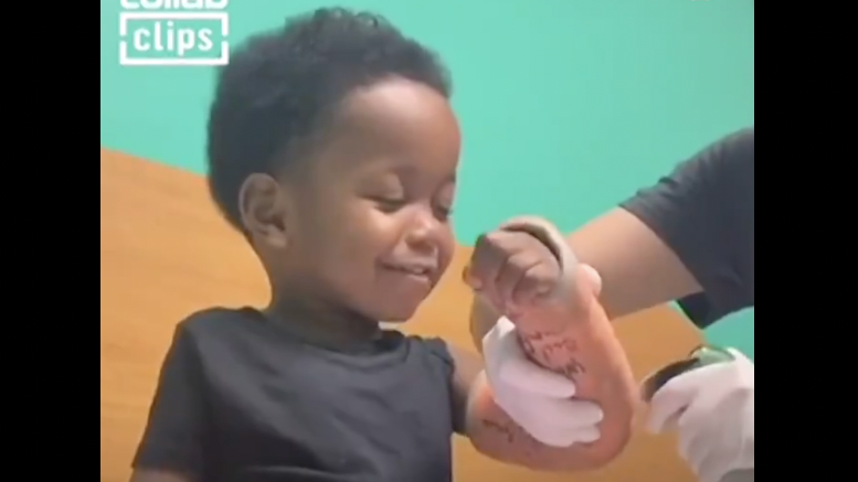 In the video, Messiah tells the medical professional that he is keeping his tablet beside him. The female practitioner then asks the child, “Have you told Siri that you’re gonna take your cast off?”