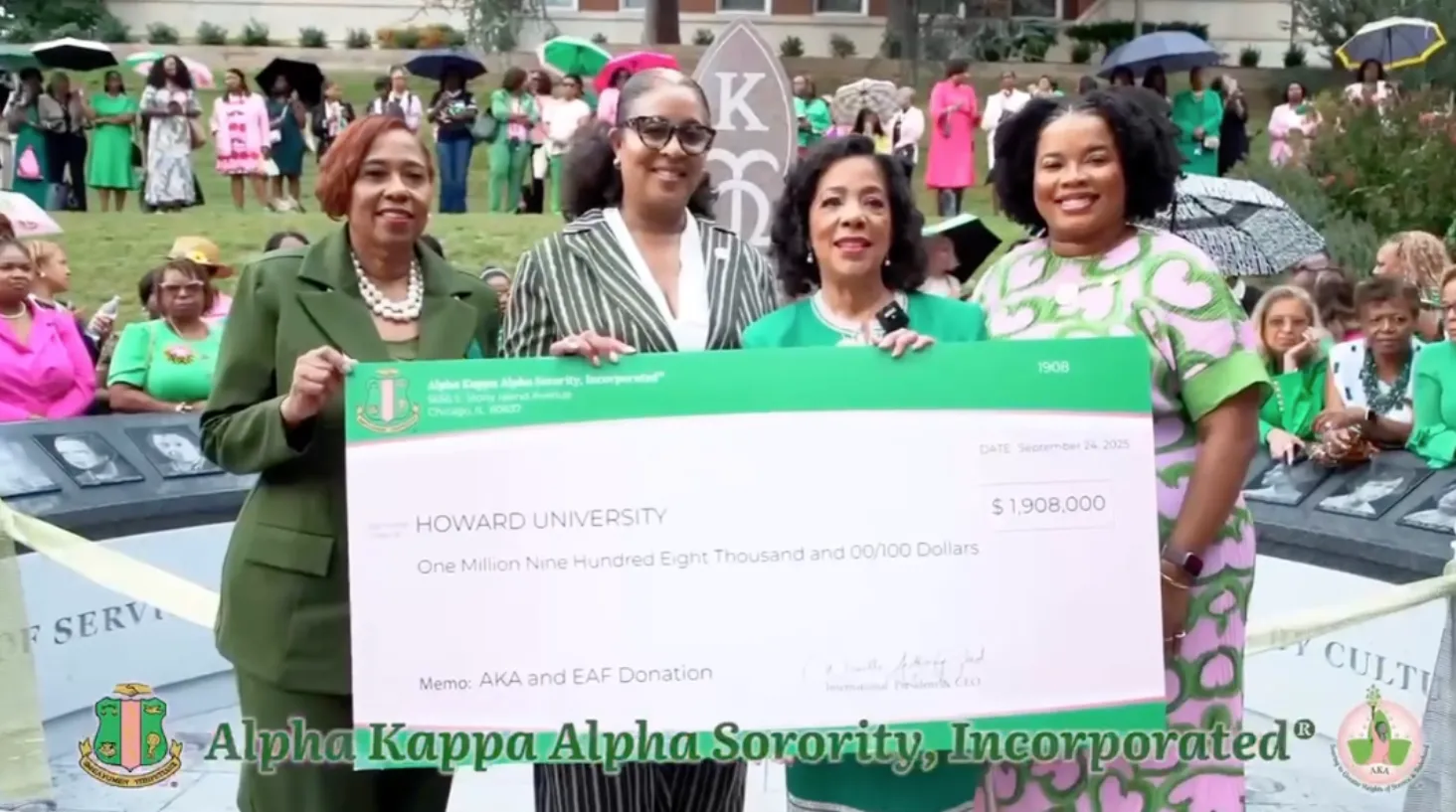 The sorority also presented Howard University with a $1,908,000 donation: “This week, a sea of pink and green filled Howard University as we returned to our beloved founding home. Alpha Kappa Alpha Sorority, Incorporated® proudly dedicated the “AKA Monument,” and presented a $1.9 million dollar donation to the HBCU,” Reed added on social media. “A historic day. A lasting legacy.”