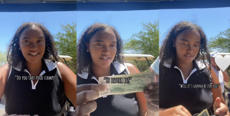 “Do you take food stamps?” the man asked condescendingly in the nearly three-minute clip.