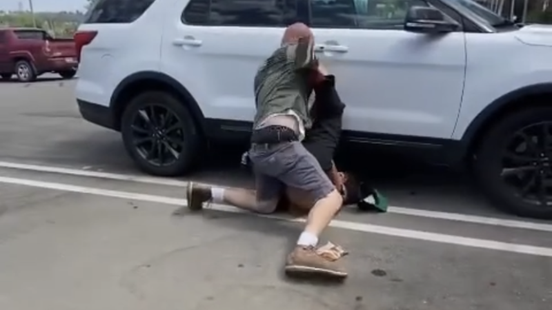 One bystander proceeded to record the parking lot scuffle, and the matter swiftly drew the attention of others nearby.