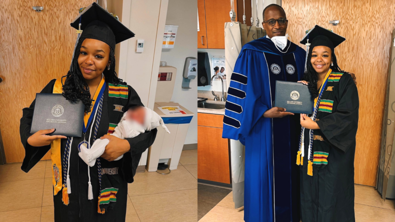 Sayles included photos of herself and her baby shortly after giving birth in the post and of her during her graduation ceremony while in the hospital.