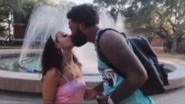 In the YouTube video, Sails is asking questions to students on campus but added a little razzle-dazzle (or so he thought) to his questionnaire by kissing one.