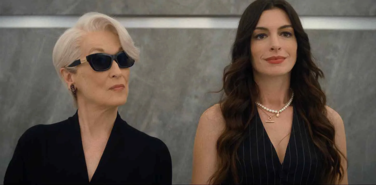 Set to Madonna’s “Vogue,” the teaser shows Streep’s iconic character Miranda Priestly walking through her fashion magazine office to the elevator. There, Hathaway’s character, Andrea Sachs, meets her. Miranda utters the phrase, “Took you long enough.”