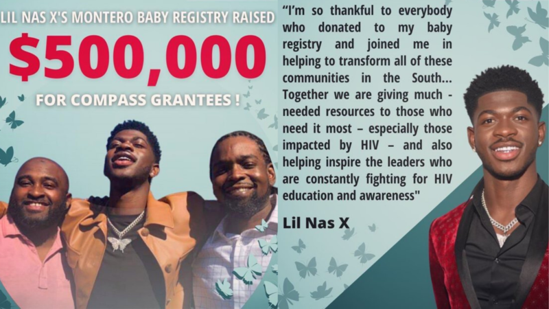 “Communities all across the South, like my home state of Georgia, are being transformed by the work of COMPASS grantees,” Lil Nas X said of the initiative. “The Montero baby registry was created to send resources to grassroots groups serving the most vulnerable. Funds raised will go to people living with HIV and inspire a new generation of leaders who will keep pushing for HIV education and one day, a cure.”