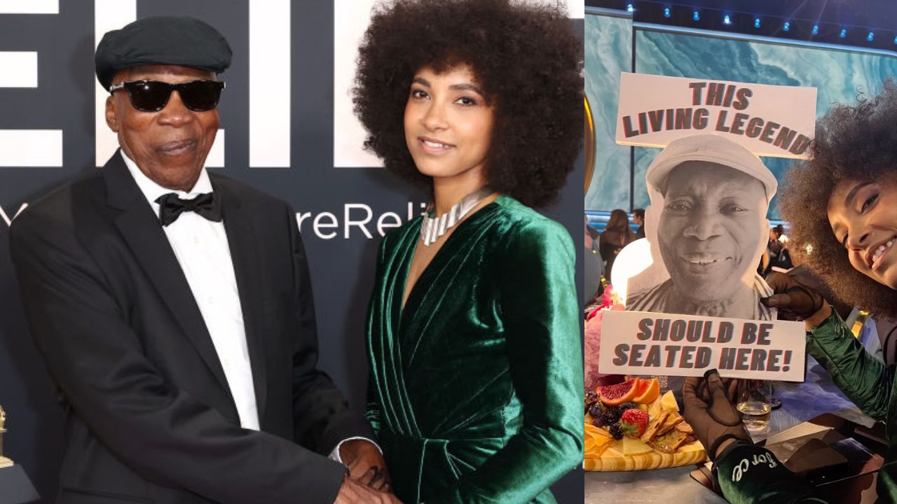 Spalding, who was frustrated, brought a sign with a cutout of Nascimento with the words “This Living Legend Should Be Here!” She posted the photo Instagram with a caption that read: “Soooo, Milton was refused a seat at the tables for this years ceremony. that didn’t sit right with me. (I’m not talking about a Grammy win. We are celebrating the glorious @samarajoysings win, I’m talking about a physical seat…here at this table I’m sitting at. I’m mad this living legend wasn’t considered important enough to sit among the A Listers, or however tables on the main floor are organized. So, I had to bring him with me. 😅 Shout out if you see us on TV ✌🏾.”