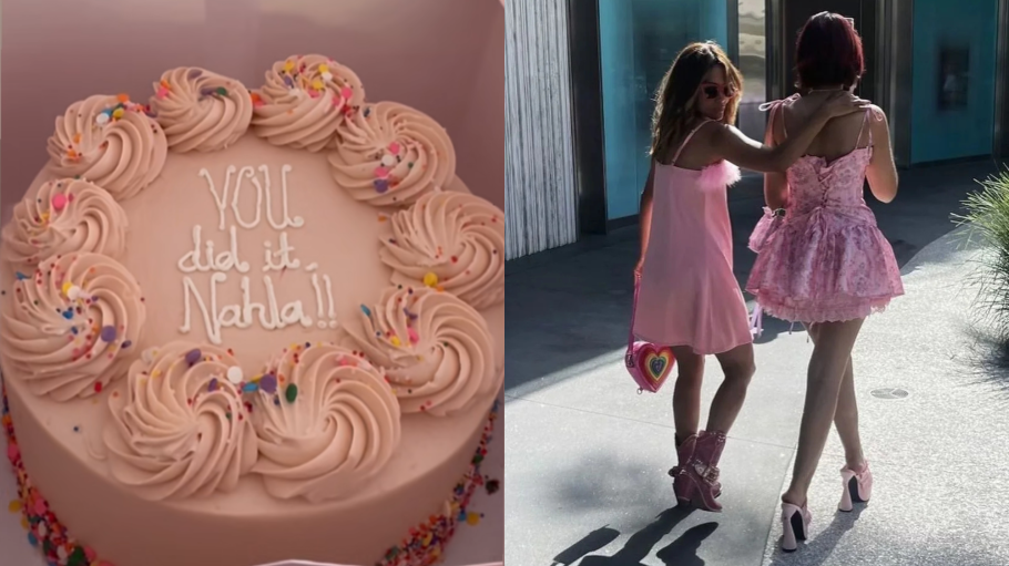 The post featured a pink cake with “You did it Nahla!!” written in white icing. The cake was placed in a box labeled “Today is the sweetest day.”