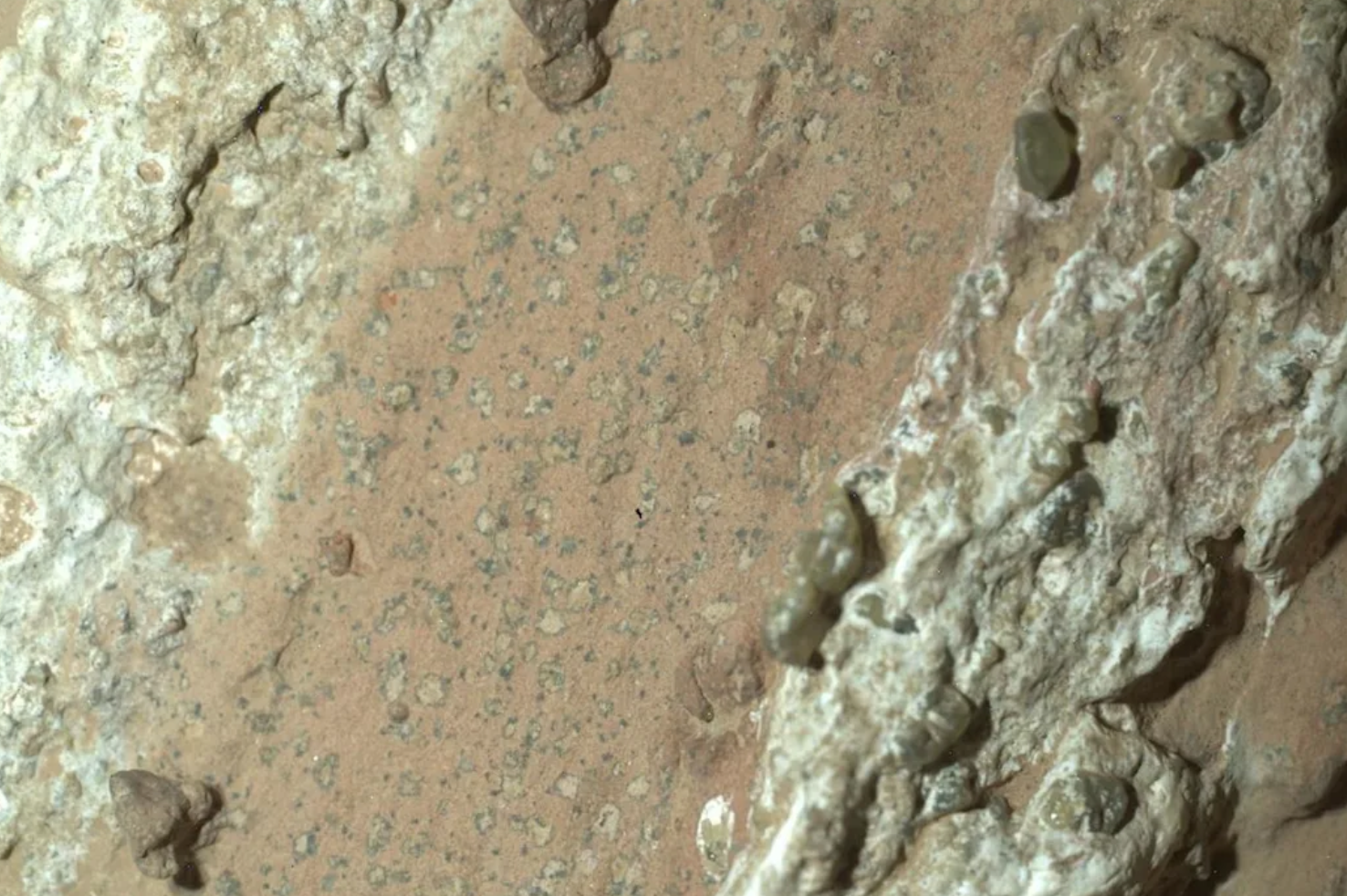 The leopard spots seen on the sample require analysis in order to find out if they formed because of microbial life or through geochemical processes that don’t require life.