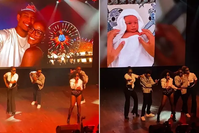 Keke Palmer showcased a series of photos with boyfriend Darius Jackson and their young son Leo as a part of a slideshow during her New York City tour stop.