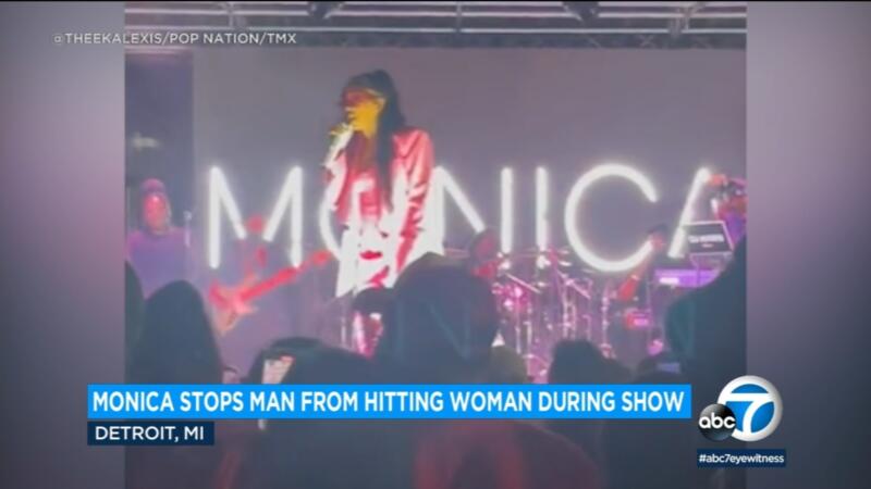 Last night while Monica was performing in Detroit, she saw a man in the crowd hit a woman.