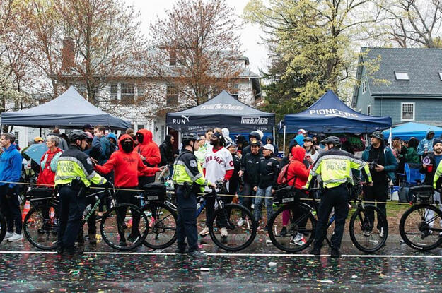 He told BuzzFeed News their cheer section consisted of organizers who encouraged runners as they hit mile 21 of the race, a notoriously difficult stretch in the competition. However, the celebration abruptly ended when police showed up at the cheer zone around noon.