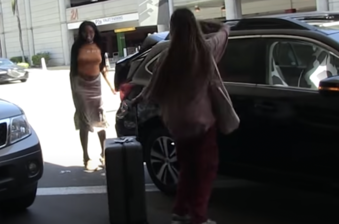 The two tenderly embraced each other before Sasha helped her sister put her bags in the car.