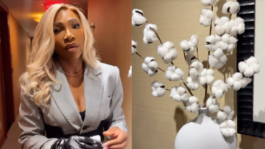 Serena Williams has the internet talking after sharing a decorative piece in a hotel. The tennis icon recently traveled to New York to celebrate the launch of Kim Kardashian‘s new Nike x Skims collection. While walking through a hotel, she noticed that the establishment had chosen to have a cotton arrangement in a vase as a statement piece, rather than flowers, which caught her off guard.
