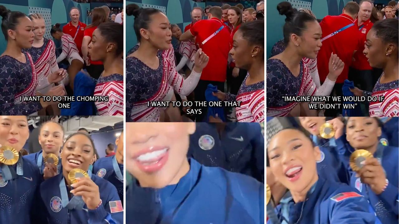 “I wanna do the chomping with the gold medals,” Biles told Lee to which she replied, “OK, and I wanna do the one that [says] ‘Imagine what we would do if we didn’t win.’”