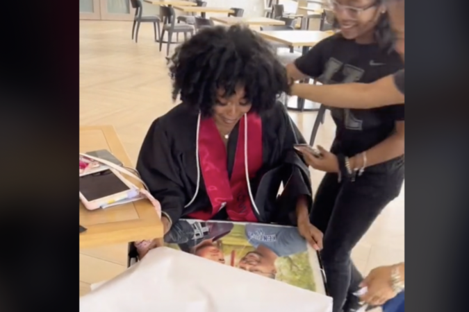 A heartwarming video shows a graduate who was overcome with emotion when she received a gift she never expected. The graduate accepted a large, wrapped gift from loved ones while wearing her gown.