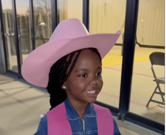 Her parents, social media influencers Nick and Keeundra Hatley Smith, posted the video, showing Knaomi hyping herself up while wearing a pink cowboy set.