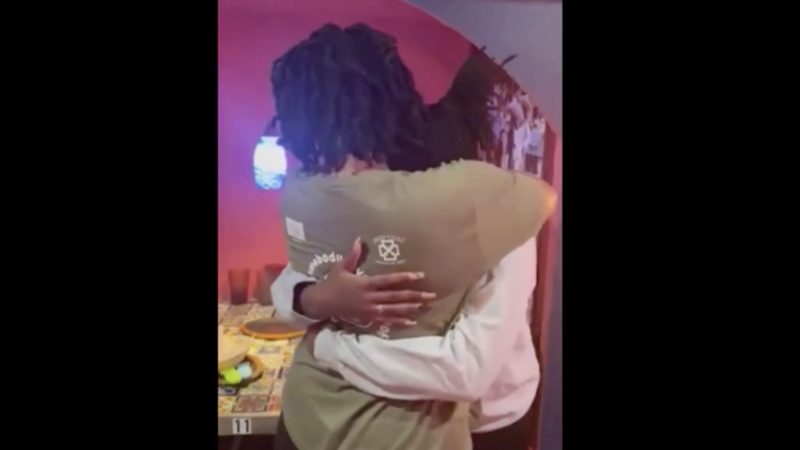 But Trina was standing beside the young woman the whole time. Surrounded by loved ones at the restaurant, the mother and daughter exchanged a warm embrace.