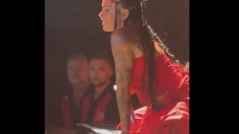 As Kehlani took a knee on the stage and gently caressed her own body, the guard can be seen moving his eyes up and down, tracking the singer’s movements attentively.