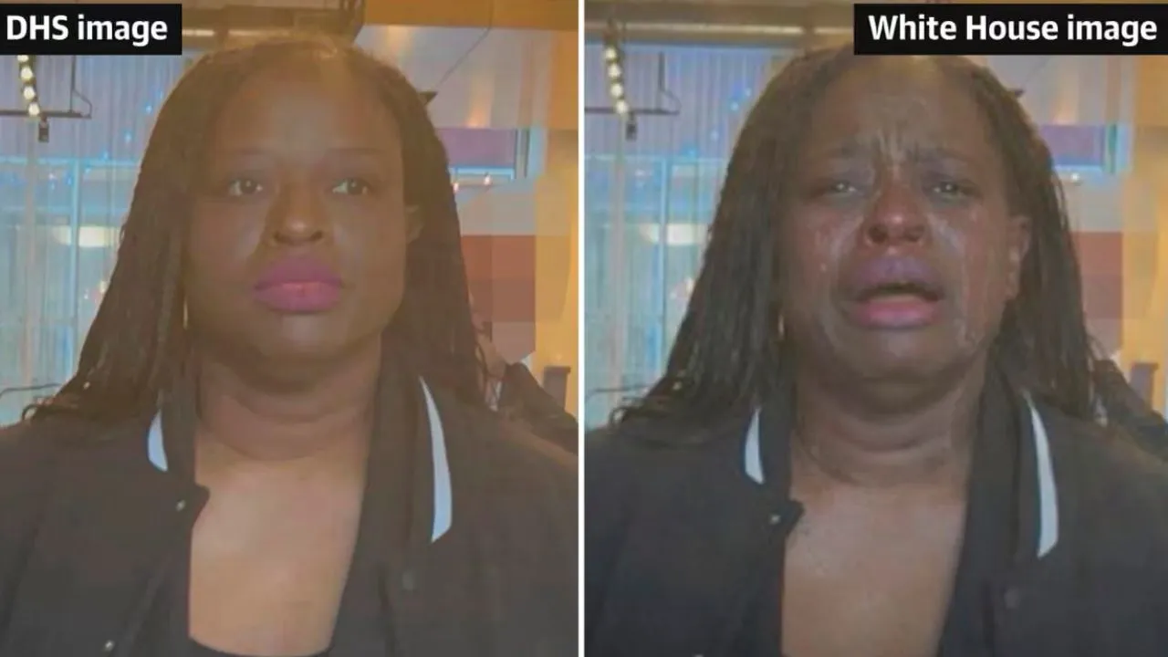 The White House posted a digitally altered photograph of a protester who was arrested at a demonstration in Minnesota. The image, which was modified using artificial intelligence and posted on social media, shows the protester falsely crying.