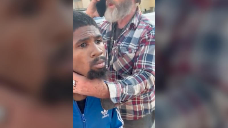 In the clip, which was taken on Oct. 10, a 62-year-old white man is on the phone saying that he saw a friend of the 24-year-old Black man take the bicycle. While he’s talking, his hand is on the 24-year-old’s neck and his legs are straddling the back wheel of the bike the Black man is riding. The person recording the video, Deangelo Wright, asks him to remove his hand from the younger man’s neck. He obliges, but gives Wright the middle finger as he does so.