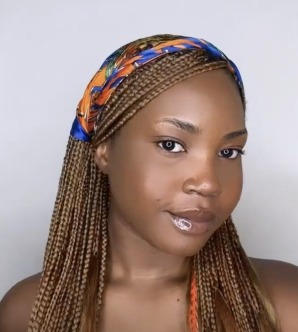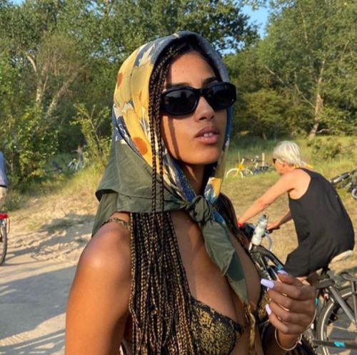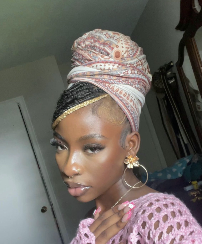 If you’ve got a big enough bandana to work with, stuffing in your entire head of plaits while only allowing your side part to escape is nothing short of regal. There are plenty of oversized bandanas you can buy, and they can even double as a top.