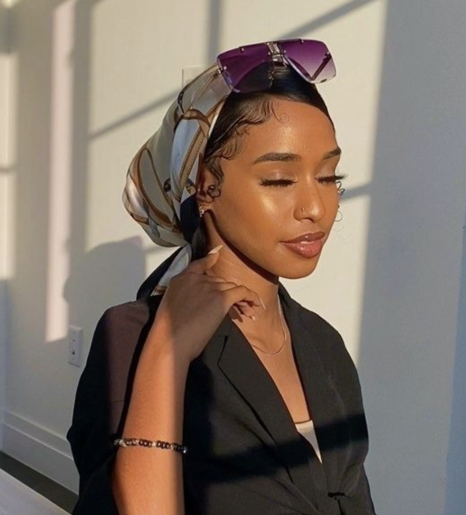 With all of the responsibilities of the modern day, sometimes, the only thing you can commit to slaying is your edges. If the rest of your hair isn’t up to par at the moment, there’s no need to run and find the emergency dry shampoo! Wrapping it all up in your bandana like this style here is a chic quick fix.