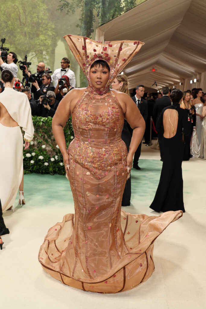 The Broadway performer took everyone’s breath away with her gorgeous two-piece set. Erivo stood out in her cropped tuxedo top. Her long skirt made a fashion statement with its pink petals attached from top to bottom. This is the performer’s sixth time at the Met Gala, and she never disappoints. As she posed with her “Wicked” co-star Ariana Grande, fans became even more excited for the upcoming film adaptation, which hits theaters later this year.