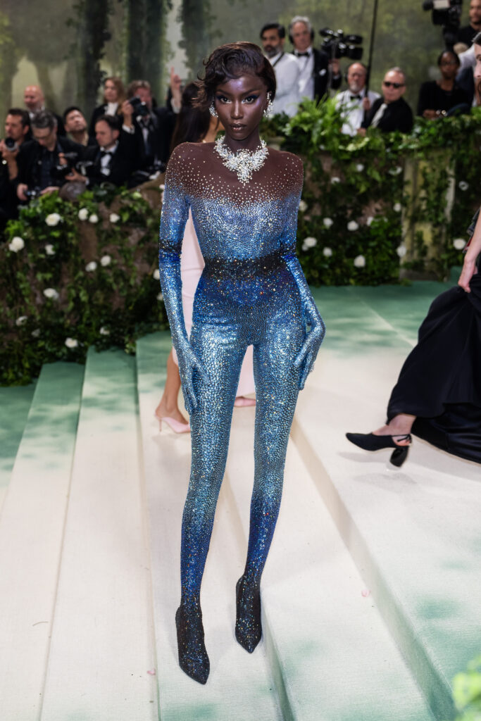 The “Challengers” actress raised the bar with her unique Margiela dress, which turned heads once she stepped onto the carpet. After a five-year hiatus, her arrival was highly anticipated, and she did not disappoint. Zendaya’s interpretation of “The Garden Theme” involved an edgy peacock look with touches of dark blue and green shades. As the event’s co-chair, the fashion queen brought the drama with her custom designed gown.