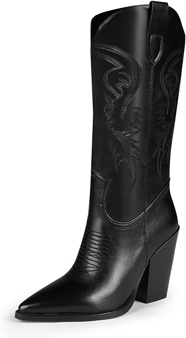 If you’re looking for a shorter or more understated look, the Soda Reno pointed-toe boot is a fitting option. And if you’re looking for a more dramatic heel, ISNOM Cowgirl Boots will give you length and a statement walk.