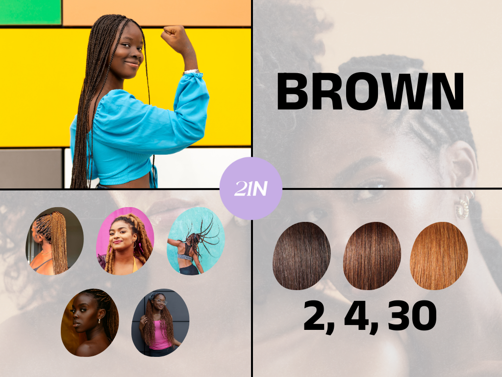 Brown braids suit a variety of styles, from the classic box braids and feed-in braids to intricate cornrows and Marley twists. Their neutral tone works well with different braid thicknesses, and brown braids are ideal for both natural, understated looks and bolder, chunky braids. Brown is perfect for everyday wear, but it also pairs well with professional styles, offering a timeless, sophisticated vibe.
