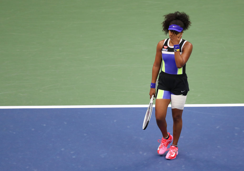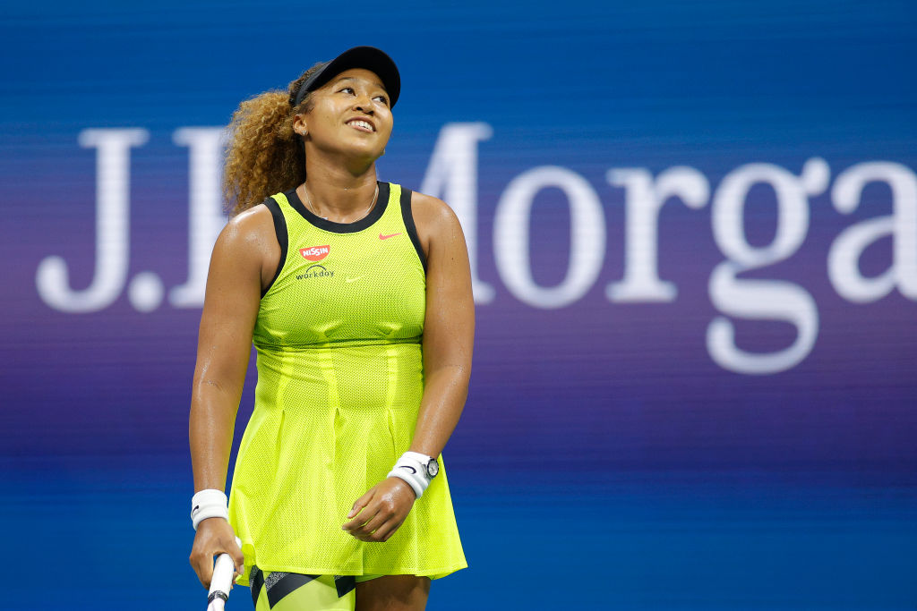 Osaka lit up the 2021 US Open with a vibrant neon yellow-green outfit that mirrored the hue of a tennis ball. The half-mesh one-piece included a flowy skirt over built-in spandex shorts, with black lining accentuating the sleeve holes and lower back. This bold choice not only showcased her vibrant personality, but also ensured she stood out on the court.