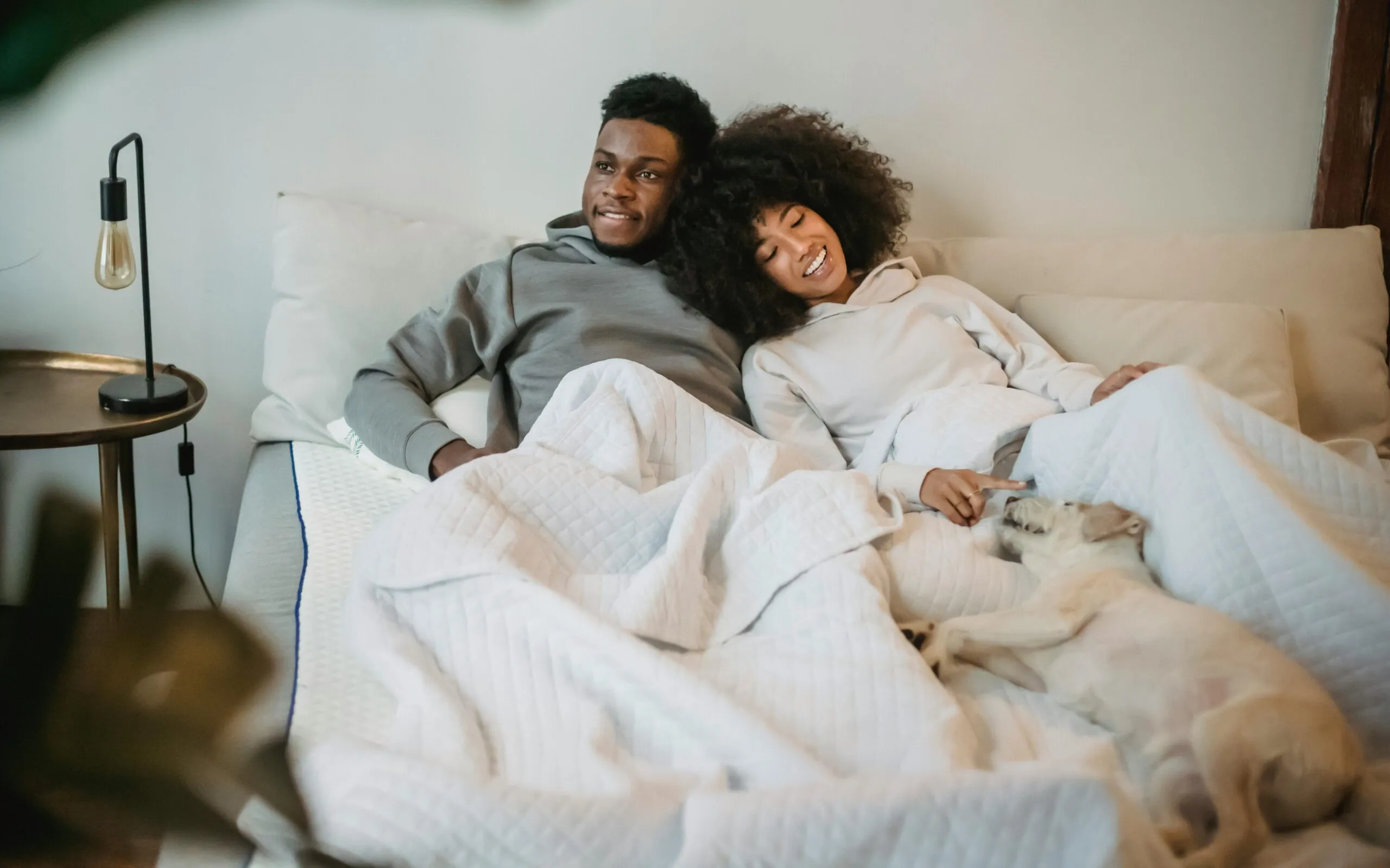 The close proximity and gentle pressure of the spooning position can help relax the body. Spooning position can reduce muscle tension and promote a sense of comfort. Plus, lying close together with the head on the pillow and body aligned can enhance blood flow, especially if you alternate which person is the “big spoon” and which is the “little spoon,” giving each person time to shift positions. Spooners also experience better sleep quality. The sense of warmth and comfort can help couples fall asleep more easily, and the physical closeness can contribute to deeper, more restful sleep. Beyond that, physical closeness allows the body to share warmth, which can be comforting and help regulate body temperature, especially on cooler nights.