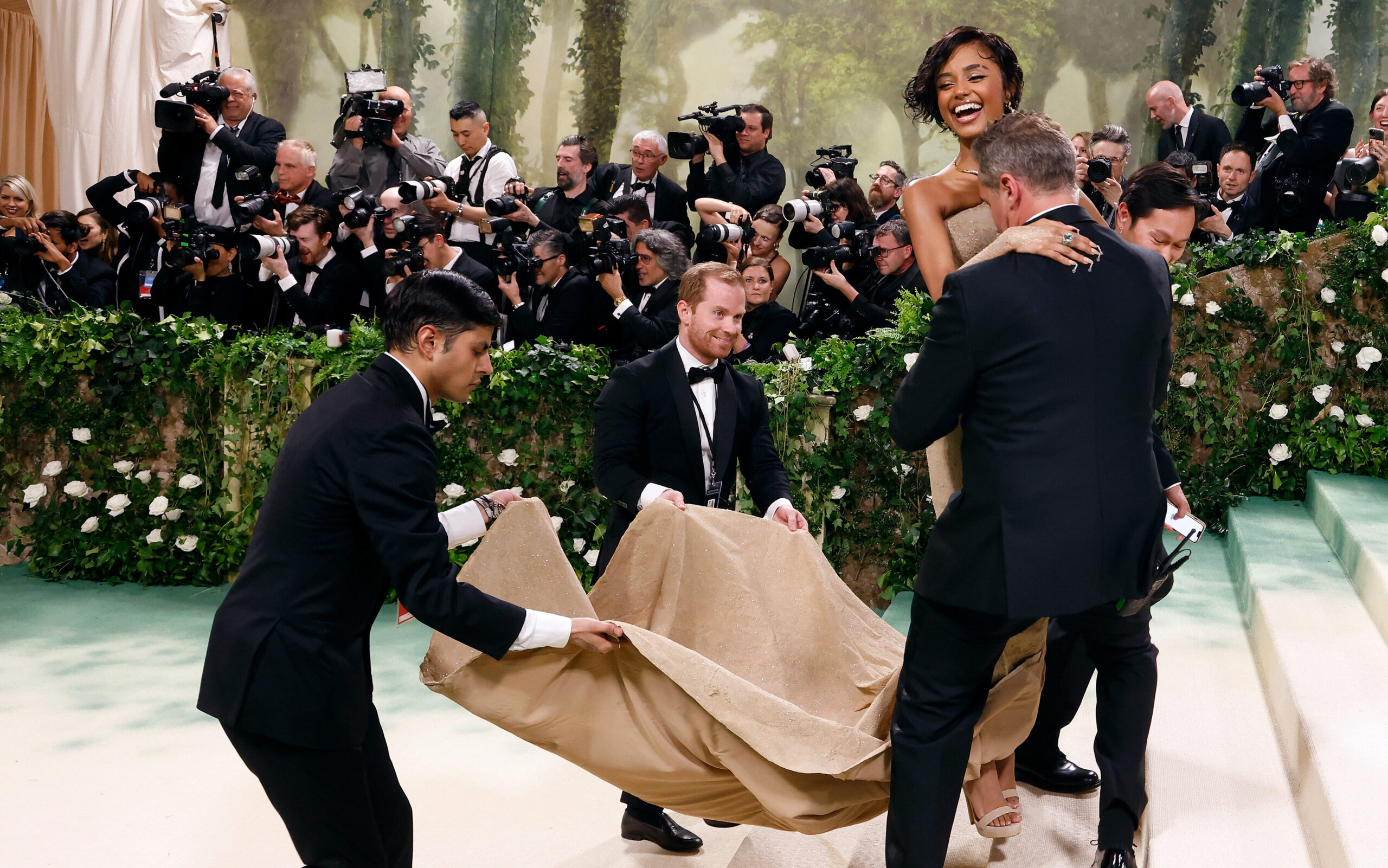 The Met Gala’s 2024 theme was “Sleeping Beauties: Reawakening Fashion,” as guests were given dress code “Garden of Time.” Latching onto “time” as the operative word, the Balmain team custom-made Tyla a dress made of “sand”— a fitting nod to the sands of time.