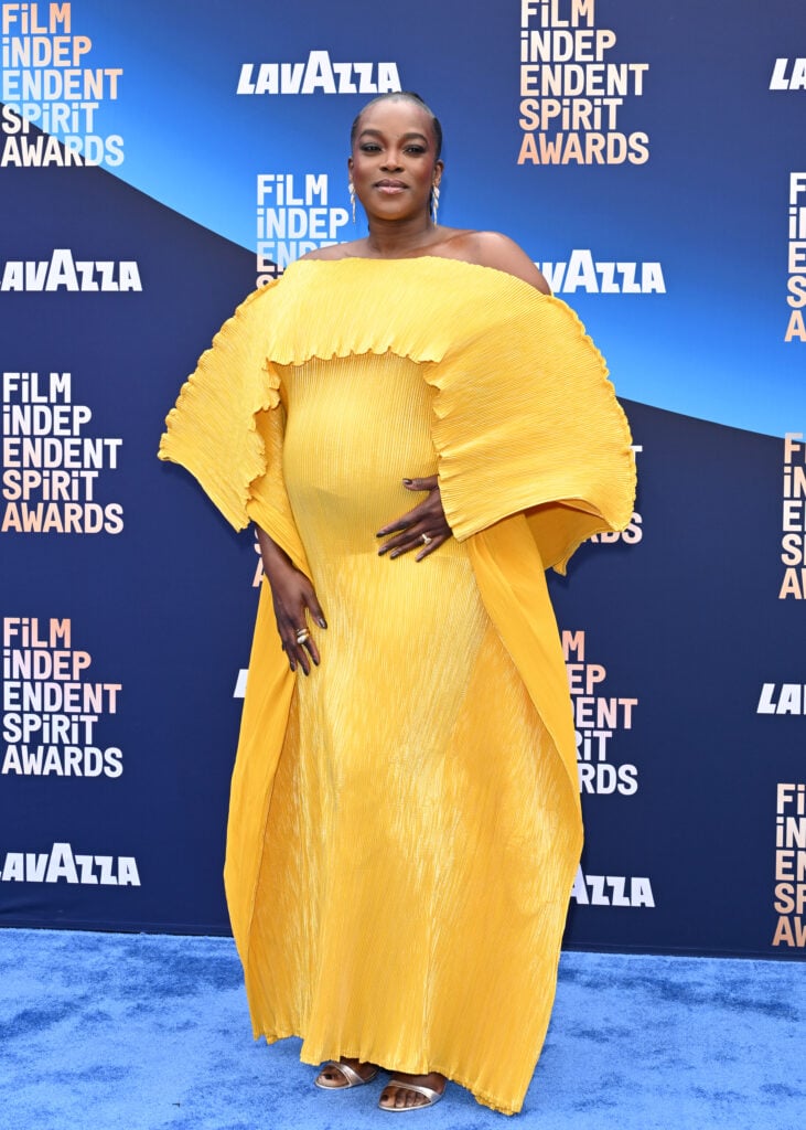 Yellow is definitely Mosaku’s color. This pleated number by Aquamaia popped on the Film Independent Spirit Awards’ blue carpet. It was a great choice to show off the mommy-to-be’s bump.